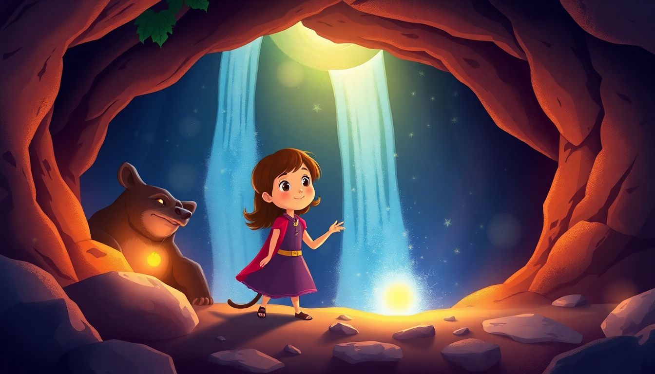 Com coragem, Iara e Chico entraram na caverna. O local era escuro e úmido, com um cheiro forte de terra e musgo. Morcegos voavam sobre suas cabeças, e o som das cataratas ecoava por toda a caverna.