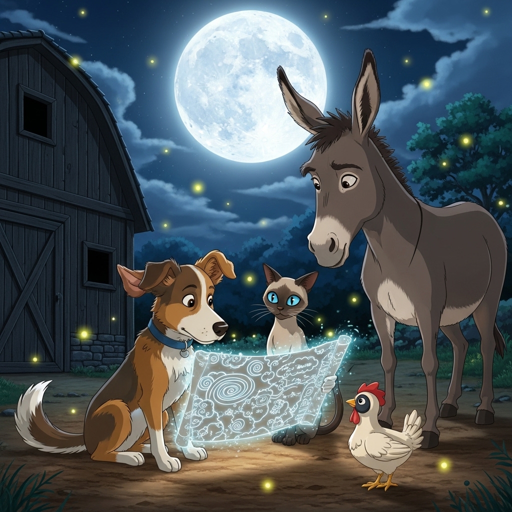 Na Fazenda Raio de Luar, os animais viviam uma vida que parecia tranquila, mas que escondia segredos antigos. O celeiro não era apenas um abrigo de madeira; era uma biblioteca de histórias esquecidas.
